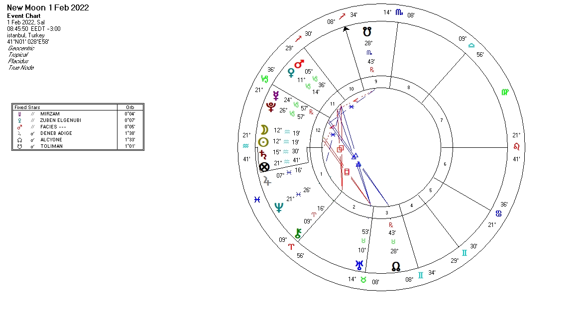 Bu yeniayla başlayan ve 16 Şubat 2022 ‘de ki Aslan burcu dolunayıyla pik noktaya ulaşacak olan bir olay deneyimleyebiliriz. Havayolu ile ilgili bir saldırı beklenebilir.