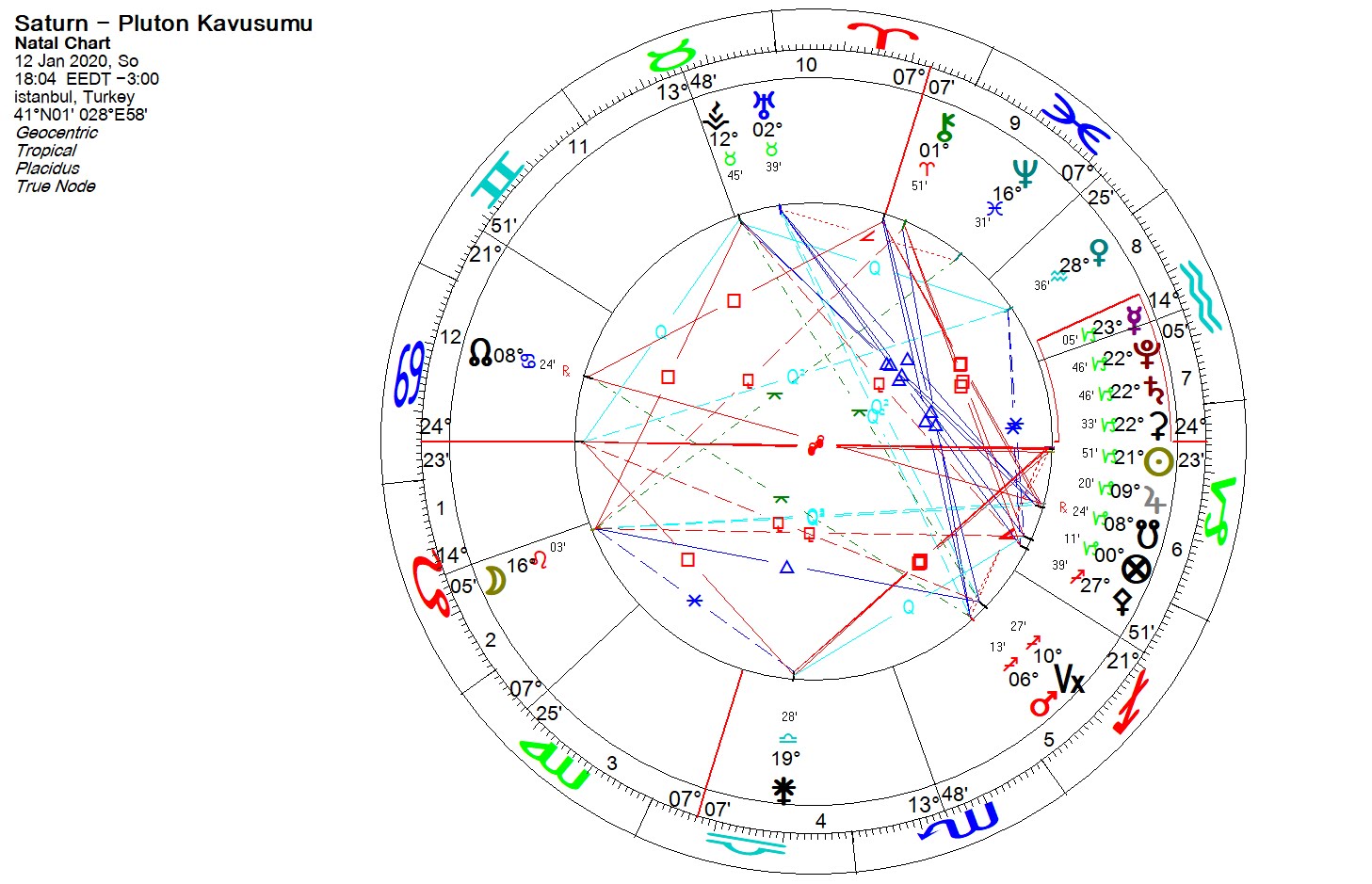 Bu iki gezegen 12 ocak 2020´de 22 derece oğlak burcunda kavuşum yapacaklar. Satürn - Plüton kavuşumları her 35 - 40 yıl aralığında meydana gelir.
