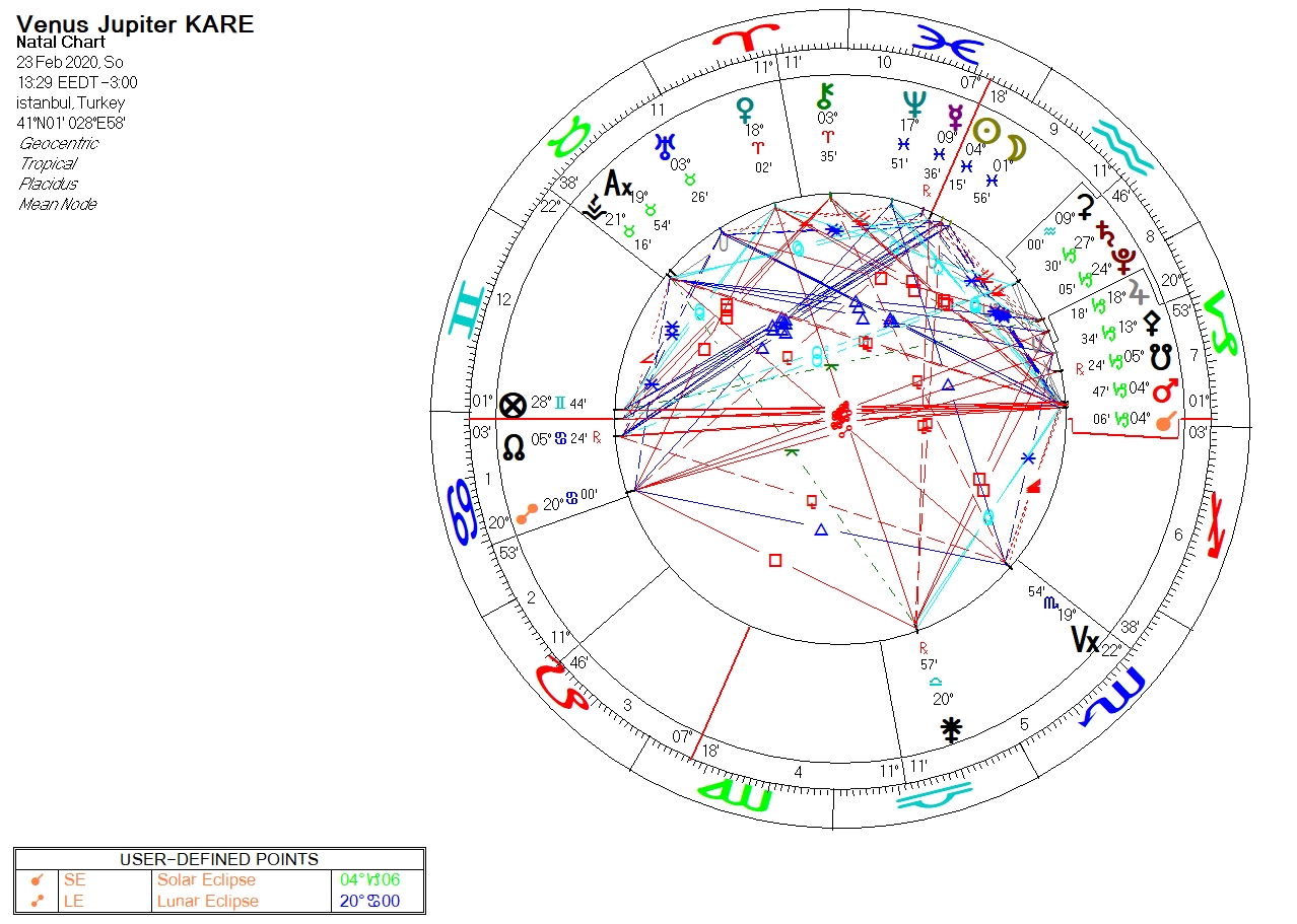 Iki iyicilin birbirleriyle sert açı yapmaları keyfimize çok fazla düşkün olacağımızı gösterir. Bu açının olumsuz etkileri tembellik , abartı ve zevk düşkünlüğüdür. Her hâlükârda ´´ gerçekçi ´´ olun ! Bu açının etkileri içerisinde birinin gözünü boyamak veya buna maruz kalmak vardır. Bu malesef, bu dönem pek işe yaramayacaktır çünkü Merkür de aynı zamanda retro hareket ediyor. Ayrıca Venüs - Jüpiter karesi finansal açıdan bazı riskler taşımakta. Bu dönem abartıdan uzak durmak gerekir yoksa maddi açıdan da sorunlar yaşayabilirsiniz. Unutmayın her şeyin ölçülü olanı güzeldir !